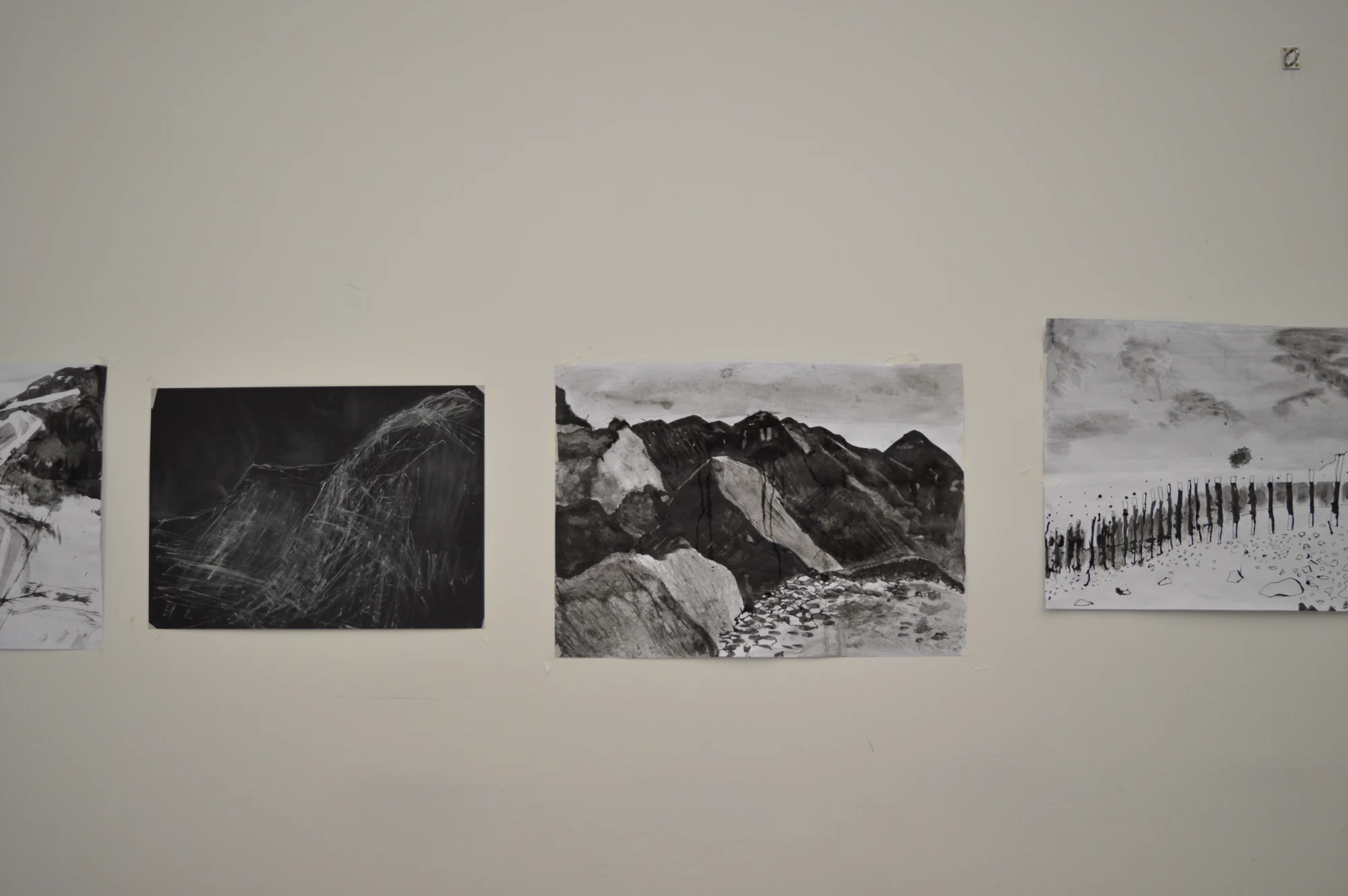 As we were to be drawing in monochrome, there was a selection of both black and white sheets of paper and as well as black ink and charcoal, people collected broken pieces of chalk from the cliffs to use.