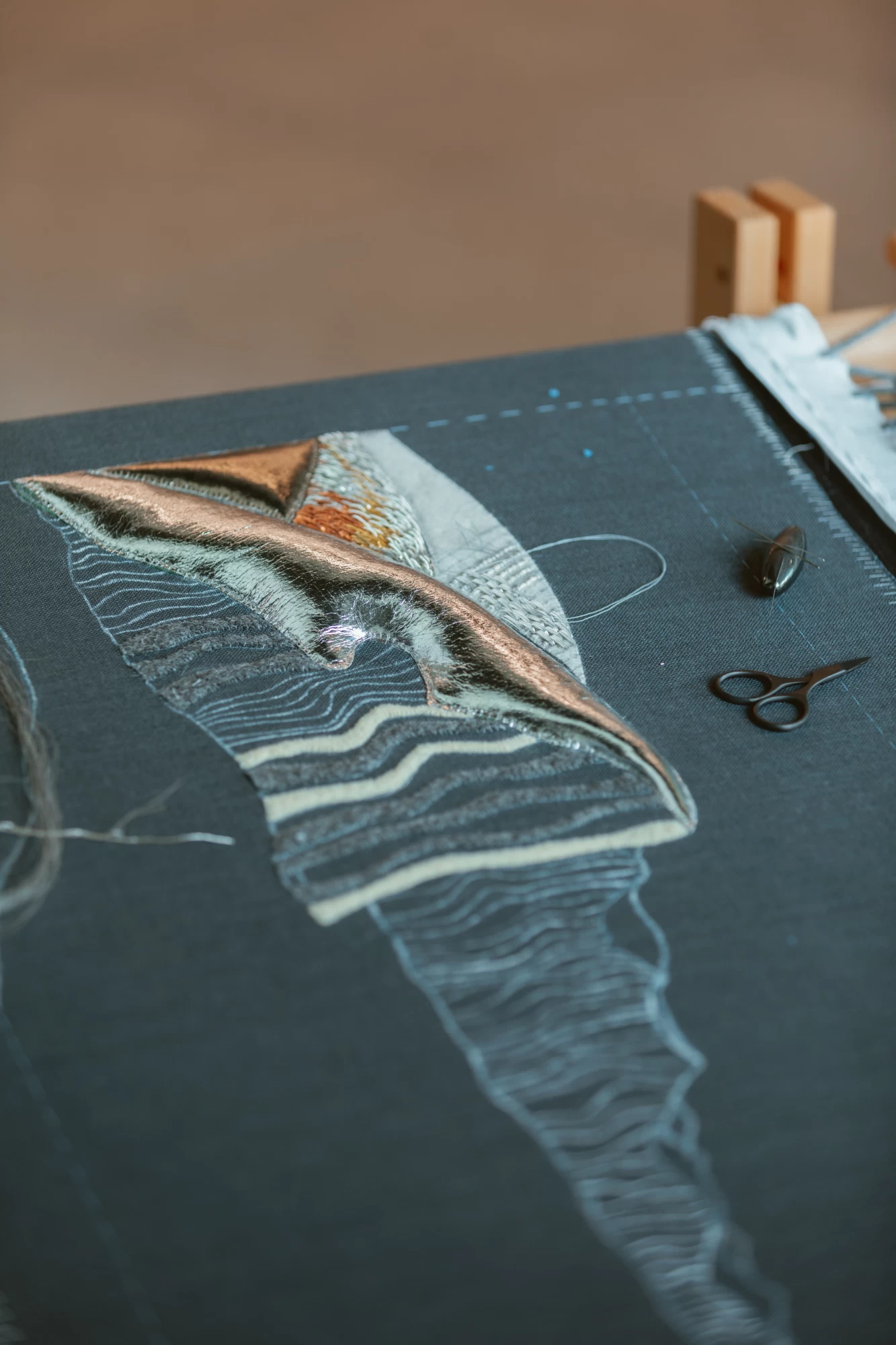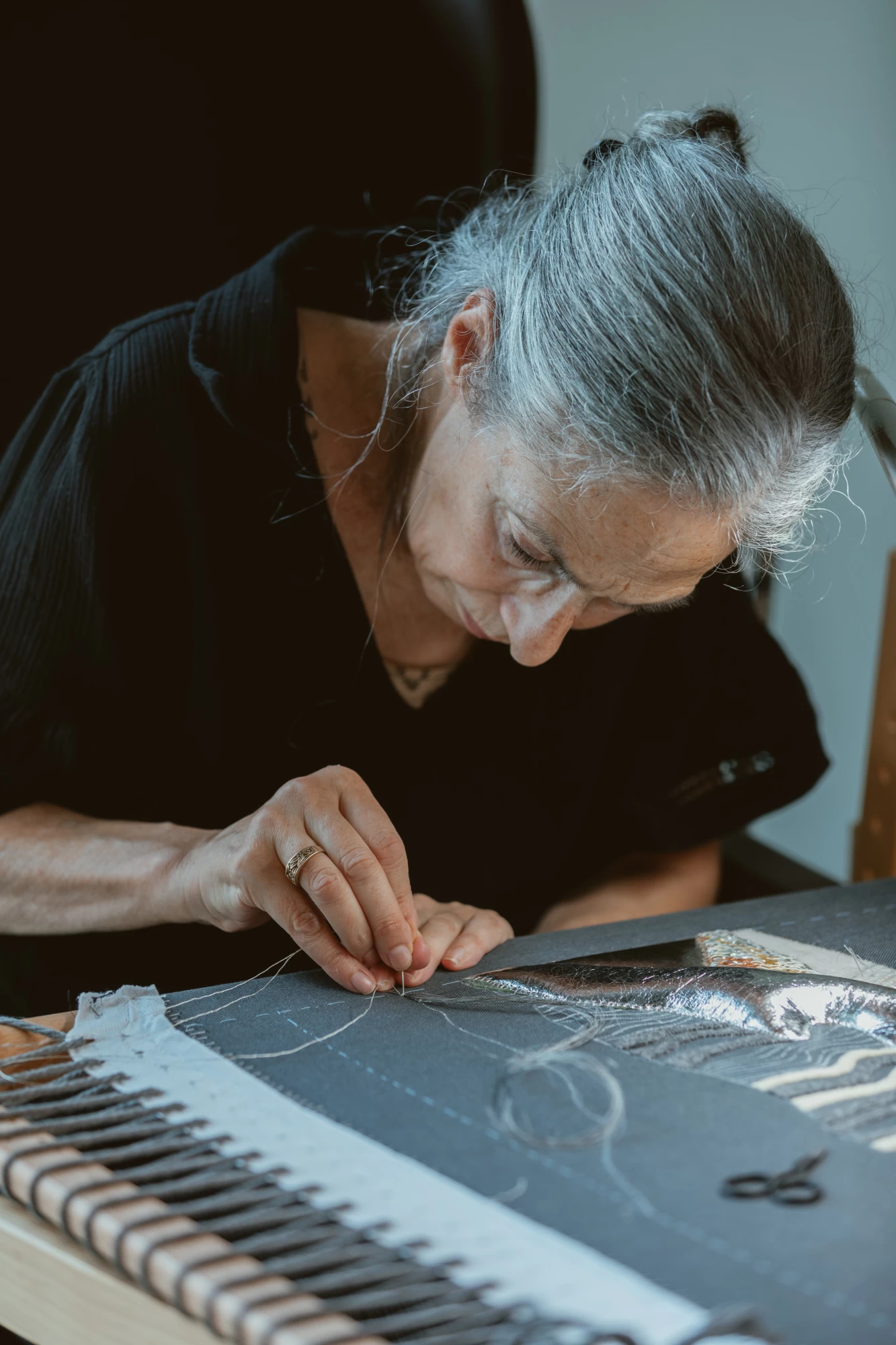 Andrea Mindel’s needlework practice confronts themes of social injustice, grief and mourning within the context of climate crisis, illness, disease and genocide. Embroidering with conscience and creating materiality through the repetitive motion of stitch, Andrea’s work pays tribute, memorialising and making beautiful things from difficult narratives.